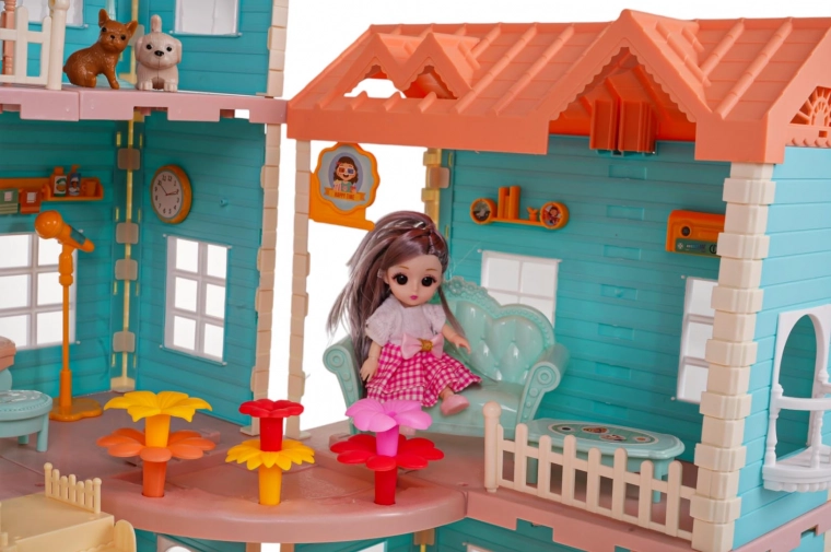 Oplev et stort interaktivt dukkehus med lyseffekter og realistisk damp fra skorstenen. Den treetagers villa er fuldt udstyret med møbler, inkluderer 3 dukker, søde hunde og en udendørs relakszone med gynge. Det farverige design og det rige tilbehør understøtter kreativ og social leg for børn fra 3 år.