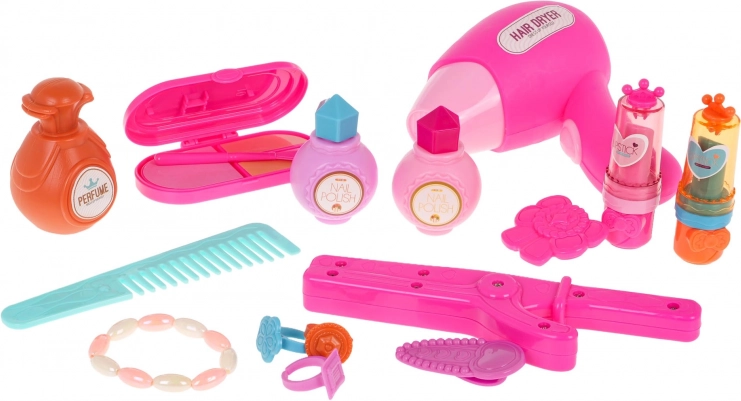 Indeholder hårtørrer, glattejern, makeuppalet, kam, parfume, neglelakker, læbestifter, ringe, hårspænder, armbånd og klistermærker – alt til en komplet forvandling.