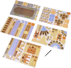 Tryk de forudskårne brikker ud og følg den billedlige vejledning. Det farvede tryk fremhæver de arkitektoniske detaljer.