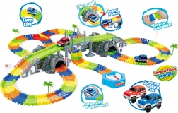 I pakken er der to batteridrevne biler, som kører af sig selv og glider problemfrit gennem banen. Børn træner dermed fantasi, logisk tænkning og finmotorik. Ideel som gave til alle små fans af fart og kreativt byggeri.