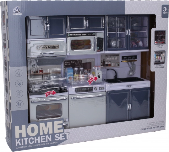 Større børnekøkken med lys- og lydeffekter giver mere plads og funktioner til kreativ madlavning og leg. Ideel til børn fra 3 år.