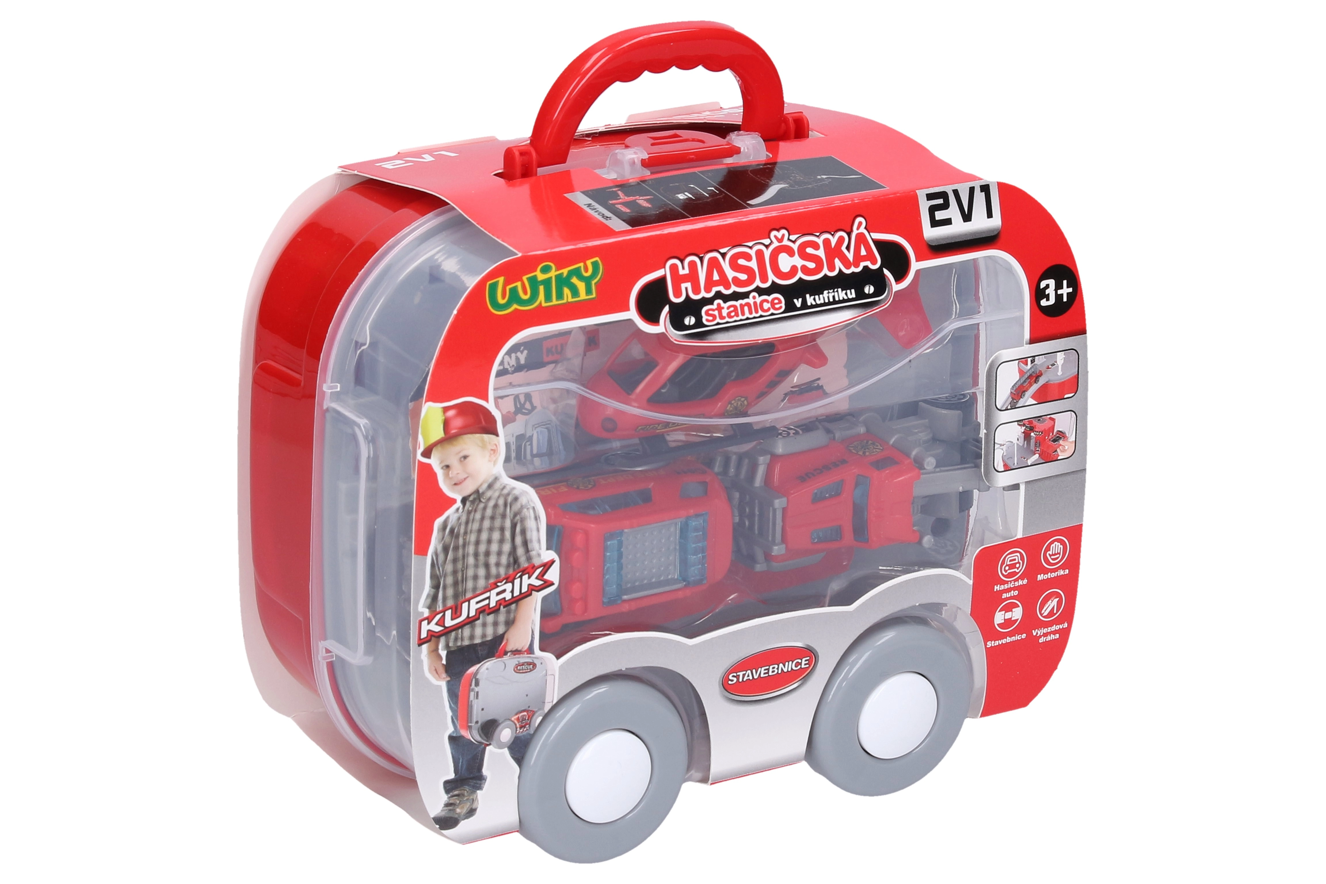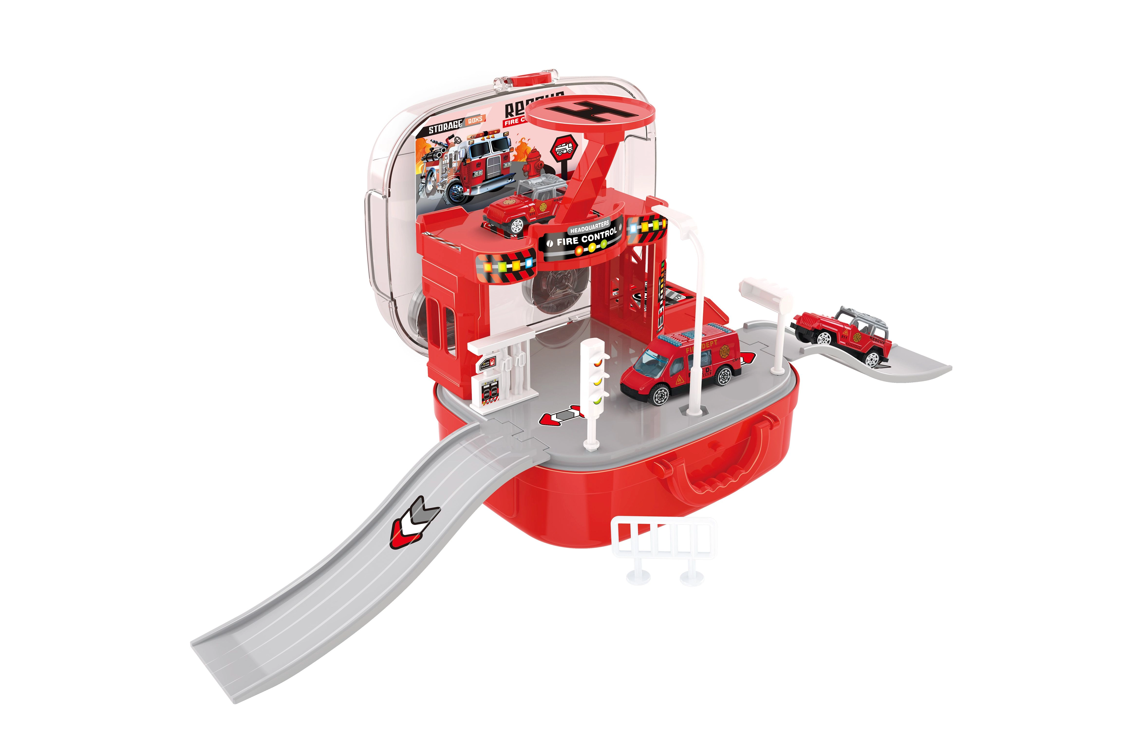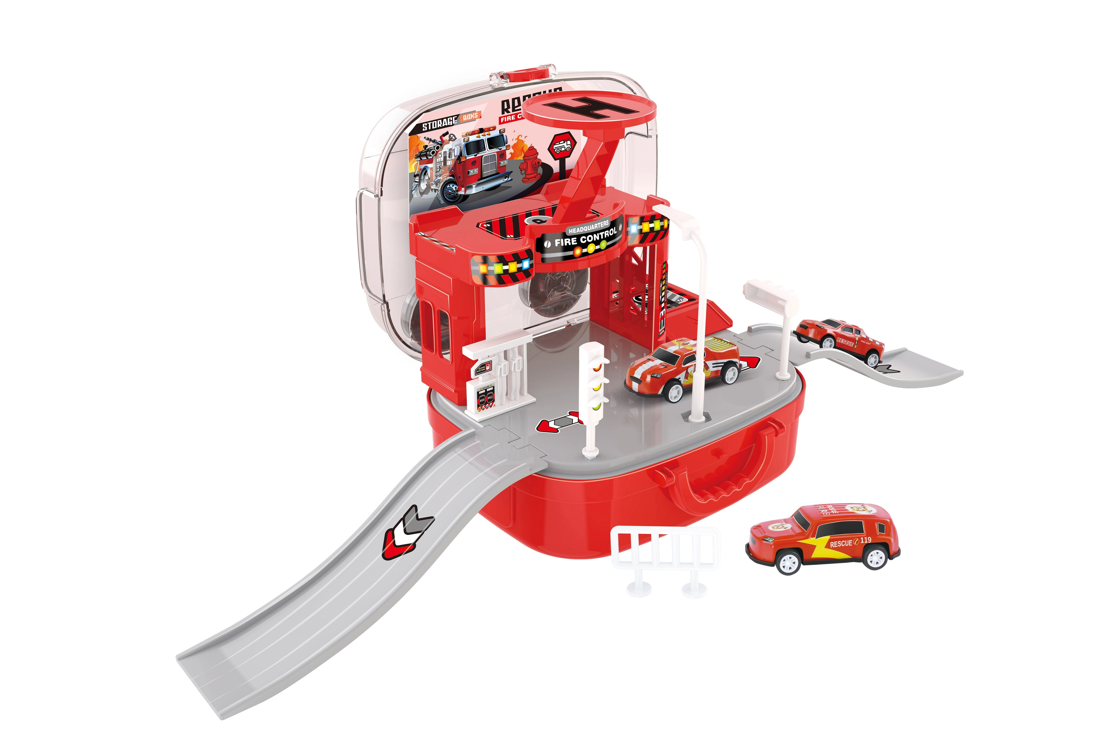 Denne gennemtænkte brandstation i kuffert vil glæde små rednings-entusiaster. Børn kan skabe deres egne indsatser, flytte køretøjerne mellem etagerne ved hjælp af den manuelle elevator og sende helikopteren ud på hurtige missioner. Takket være den praktiske kuffert kan hele stationen nemt lukkes og tages med efter legen.