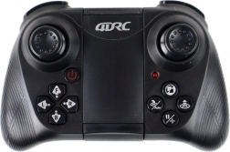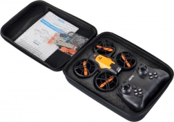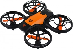 Hele sættet er lavet af holdbar plast, som sikrer styrke og lang levetid. Dronens mål er: 12 cm x 3 cm x 11 cm, så den er kompakt og let at styre, mens fjernbetjeningen måler: 11,5 cm x 5 cm x 7 cm.