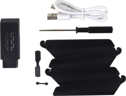 Medfølger: USB-kabel til opladning, ekstra rotorer, skruetrækker og manual – alt du skal bruge for at komme hurtigt i gang.
