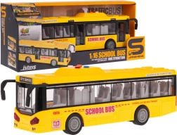 Denne gule skolebus er den perfekte følgesvend til børns eventyr. Lavet i fremragende kvalitet og i skala 1:16, skiller den sig ud med sit realistiske udseende og detaljer. Bussen har døre der kan åbnes ved hjælp af en knap placeret ovenpå. Gummidæk sikrer fremragende vejgreb.