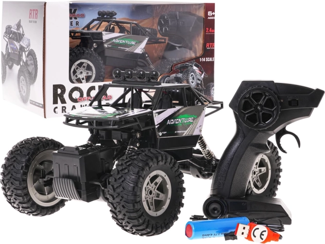 Robust RC-crawler i skala 1:14 med metal karrosseri, 4×4-drev og store gummidæk klarer krævende terræn. Takket være fjedret affjedring, styringsjustering og en rækkevidde på op til 50 m tilbyder den dynamisk og holdbar kørsel for børn fra 6 år. Strøm fra et genopladeligt 3,7 V 1200 mAh batteri sikrer længere leg, og styringen foregår på 2,4 GHz.
