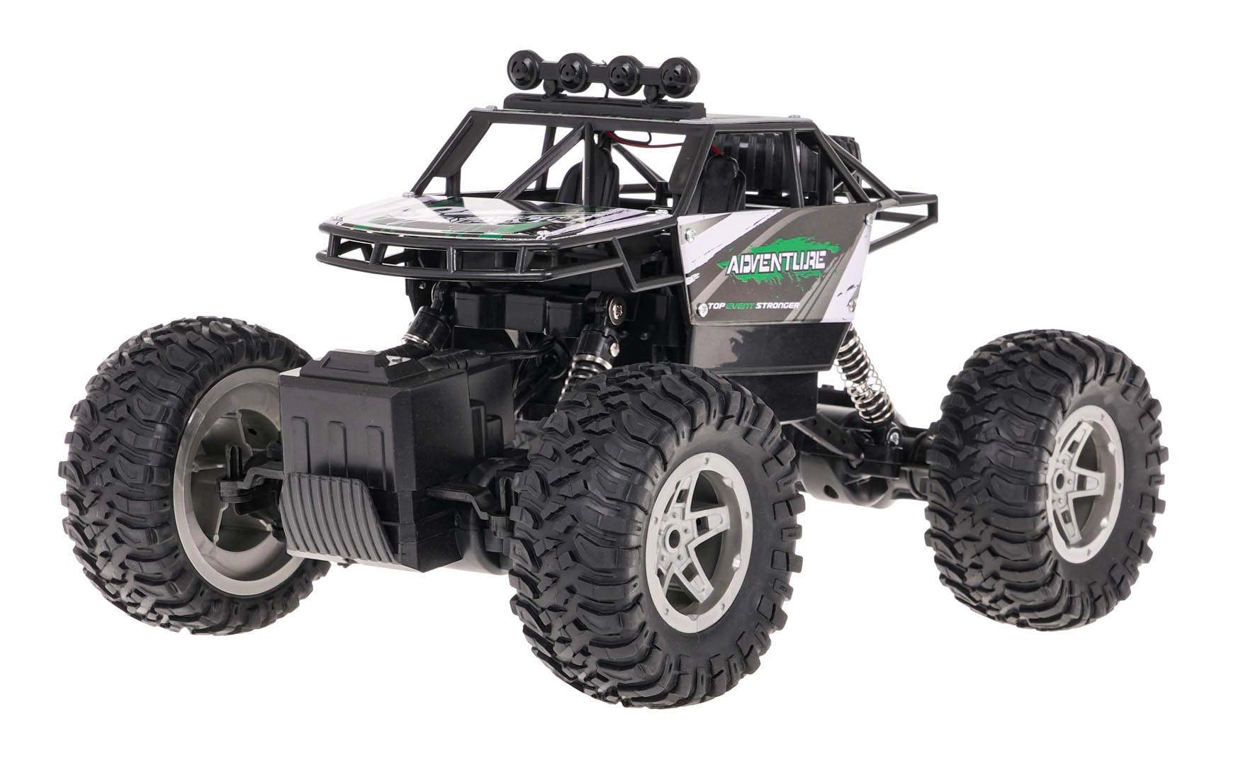 Den intuitive pistolgrebs-controller på 2,4 GHz sikrer stabilt signal uden forstyrrelser og styring i alle retninger: frem, tilbage, højre og venstre. Takket være de store skridsikre dæk med markant mønster klatrer crawleren let over forhindringer og holder sporet selv på glatte overflader.