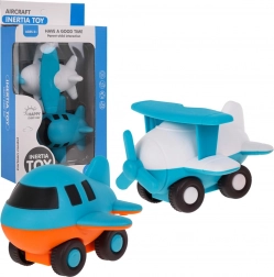 Takket være det enkle push-and-go-drev skal flyene blot have et let skub for at køre fremad. De kraftige farver fanger opmærksomheden, og den blå–hvide model imponerer desuden med en roterende propel, der vækker nysgerrighed og styrker finmotorikken.