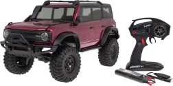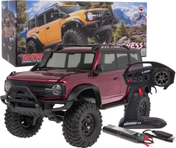 Fjernstyret bil Wilderness, fremstillet i skala 1:10, til børn fra 14 år. Køretøjet har lakeret karrosseri, LED-belysning: forlygter, bremselys, baklys, blinklys – ser flot ud efter mørkets frembrud. Individuel affjedring på hvert hjul, metalstænger ved styrearmene, indbyggede for- og bagdifferentialer. Store dæk med gummimønster, ekstra stor styrevinkel betyder, at køretøjet kan klare enhver overflade. Et fuldt reservehjul er placeret bagpå køretøjet. Køretøjet kører i alle retninger, overvinder forhindringer let og er desuden vandtæt. Maksimal hastighed er 18 km/t; fra fjernbetjeningen kan vi indstille en konstant hastighed. Der er to hastigheder at vælge imellem. Bilen drives af et genopladeligt 7,4 V batteri (inkluderet) og 4 x AA 1,5 V (ikke inkluderet) – fjernbetjening.