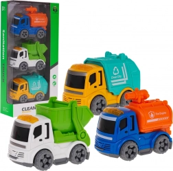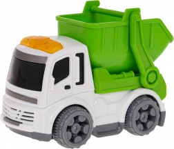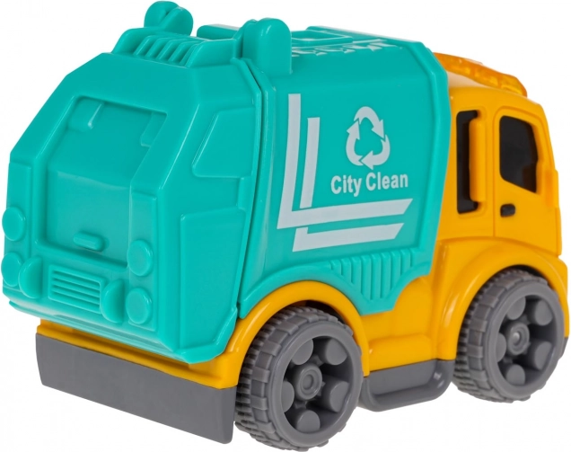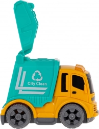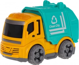 Skraldebil med City Clean/Recycling-tryk har åbningsklap og glat hjulbevægelse – ideel til lege med affaldsindsamling og udforskning af økologi.