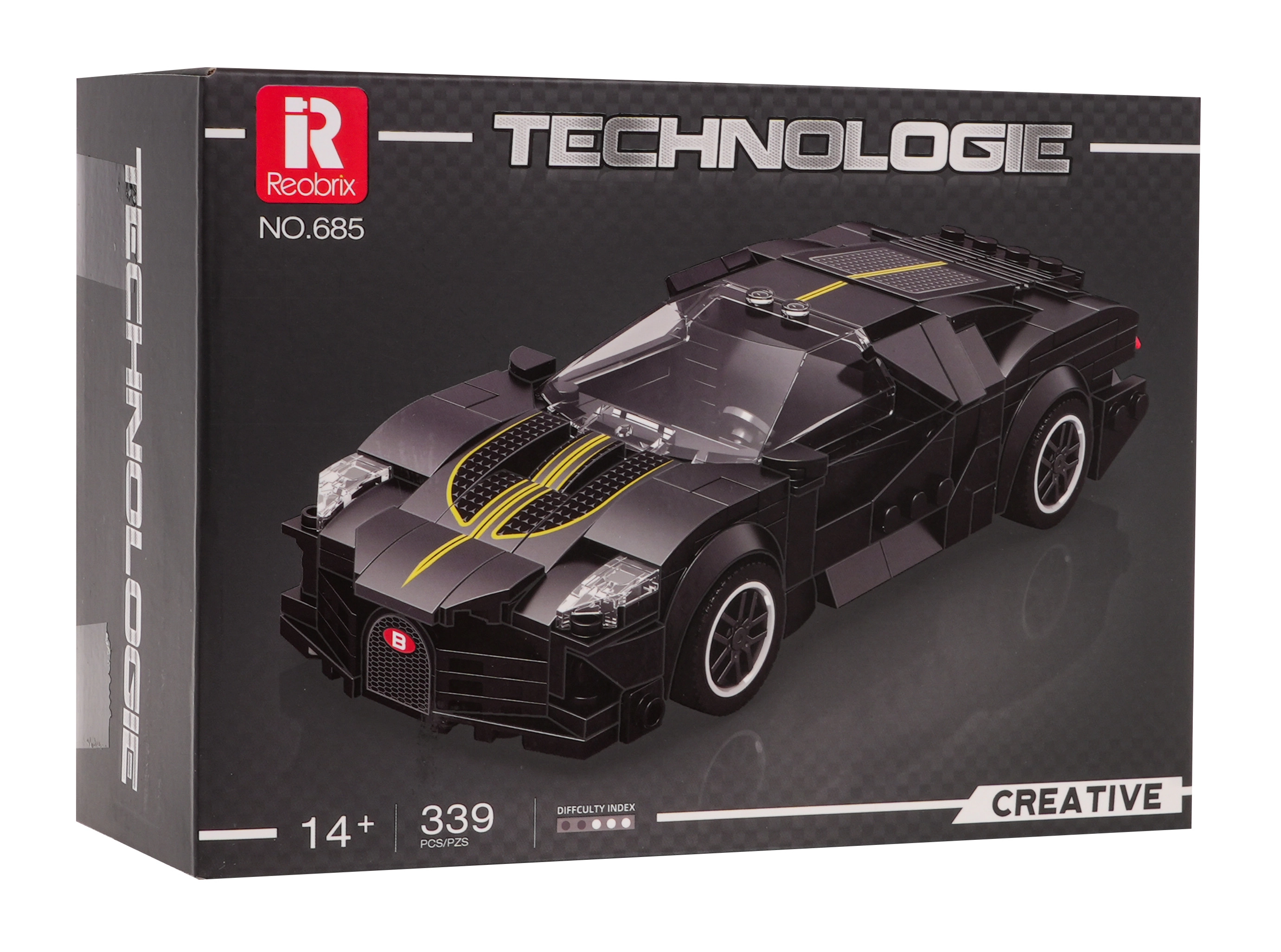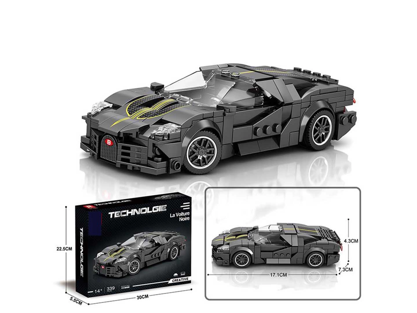 Byg din egen sportsvogn af 339 dele i elegant sort‑grå farve. Ideel til børn fra 14 år, med sværhedsgrad 2/5. Byggesættet udvikler finmotorik, rumlig forestillingsevne og tålmodighed. Inkluderer billedvejledning og klistermærker til det endelige look.