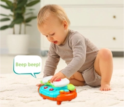 Rattet understøtter finmotorik, hørelse og hånd–øje-koordination. Med flere afspilningstilstande byder det på horn, 3 melodier samt 4 musik- og lydspor, hvor den centrale knap lyser i takt.