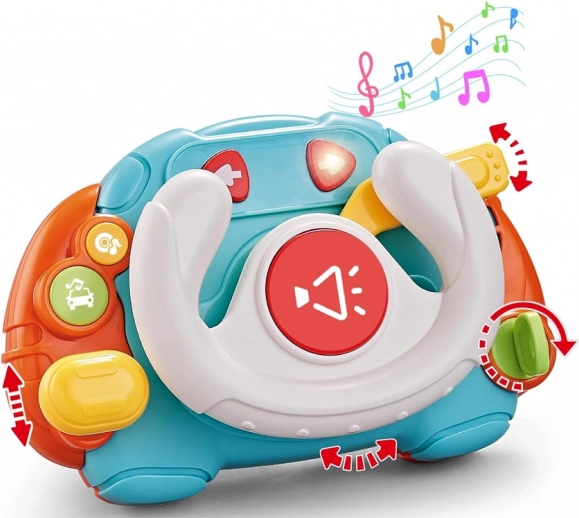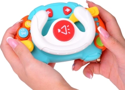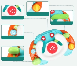 Interaktivt rat til børn med lys og lyde giver små chauffører en realistisk køreoplevelse. Det tilbyder drejning af rattet til højre og venstre, en startnøgle med motorlyd, blinklys med lyseffekter, horn og glade melodier. En let og kompakt legeting, ideel både hjemme og på farten, som stimulerer sanseudvikling og fantasi hos børn.