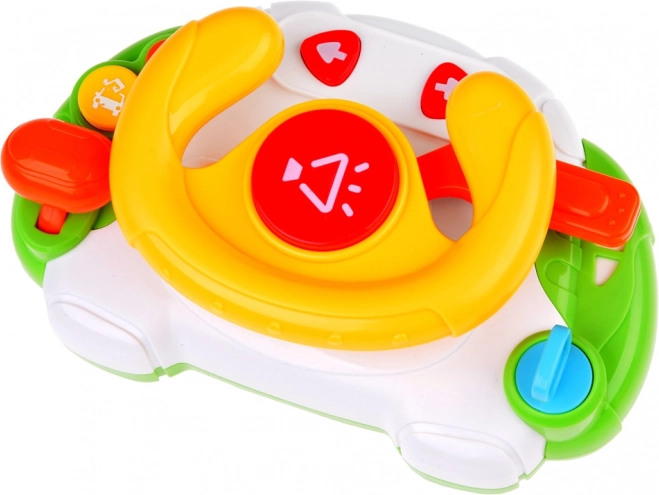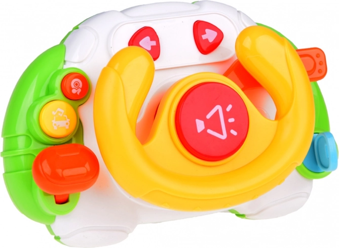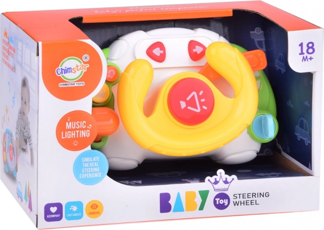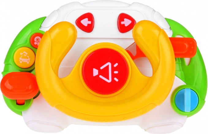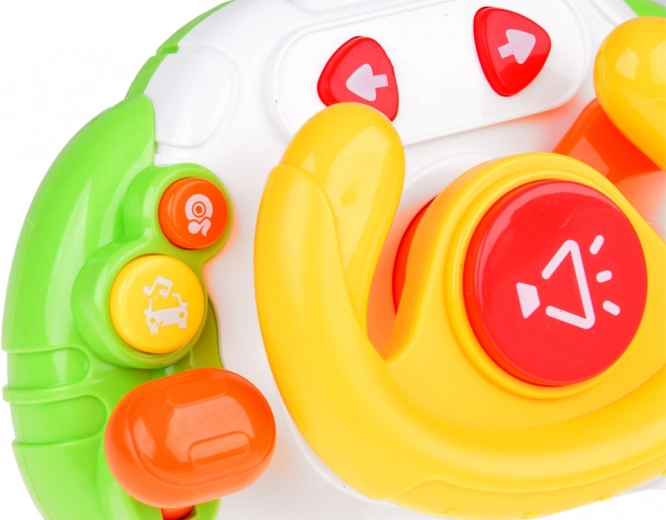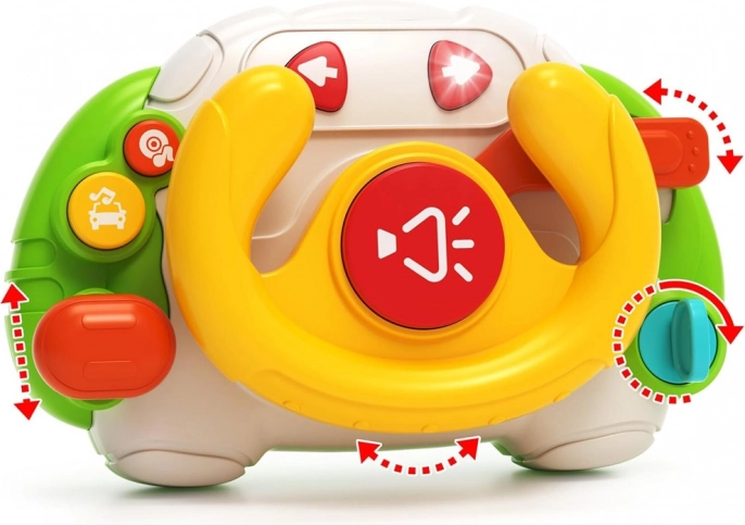 Dette farverige børnerat understøtter fantasi, sanseudvikling og hånd-øje-koordination. Børn kan dreje rattet til højre og venstre, bruge nøglen til at “starte” motoren og tænde blinklys med realistiske lyde. Glade melodier og lyseffekter holder de små chauffører fokuserede både hjemme og på farten.