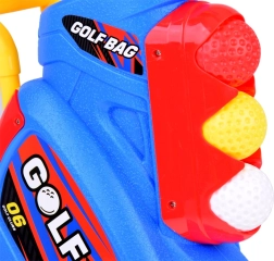 Let plast-golfbag med hjul og håndtag gør det nemt for børn at køre hele sættet hvor som helst – i haven, på legepladsen eller i parken.