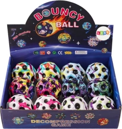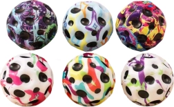Den kosmiske lysende bold er en lille, men fascinerende legeting for både børn og voksne. Med en diameter på 7 cm ligger den godt i hånden, bevæger sig med høj hastighed efter et hop, og dens farverige, rumlige motiver fanger øjet med det samme. Ved stød lyser den op, så legen fortsætter selv i skumringen.