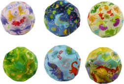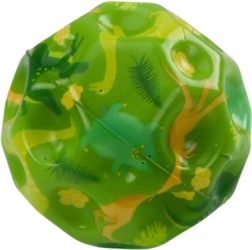 Den lysende bold med dupper og dinosaurmotiver er designet til at underholde og samtidig udvikle børns færdigheder. Når den trykkes eller studs'er, lyser den op, hvilket motiverer børn til bevægelse og nysgerrig leg. Takket være den behagelige tekstur ligger den godt i hånden, også for mindre børn.