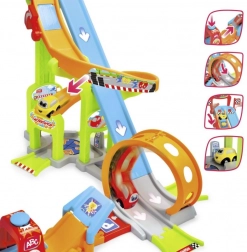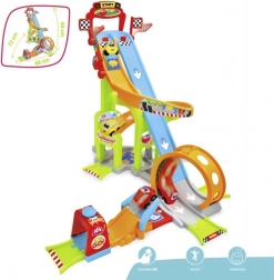Start løbet med lynhurtig affyring, og se bilerne suse gennem det store loop. En herlig portion fart og sjov for små racerkørere.