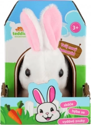 En stilfuld æske, der fungerer som kaninens hus, følger med – barnet får straks en kulisse til historier og små scener. De kompakte mål på ca. 16 × 17 cm gør den let at bære og opbevare. Kræver 2× AA-batterier (medfølger ikke).
