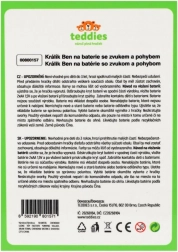 Leder du efter en blød ven, der både underholder og stimulerer fantasien? Plys-kaninen BEN er det rigtige valg. Den bevæger ørerne, kan hoppe og laver søde lyde, som motiverer børn til både leg og kram. Takket være den høje kvalitet og bløde overflade er den sikker og behagelig at røre ved.