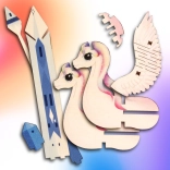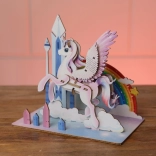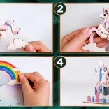 Dette farverige 3D træpuslespil i form af en magisk enhjørning glæder både små byggere og fantasielskere. Det kvalitetsmæssige tryk giver modellen et markant udseende, og takket være samling uden lim kan børnene altid samle modellen igen. Et overskueligt trin-for-trin-vejledningshæfte medfølger.