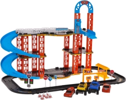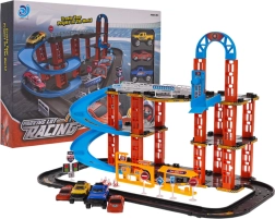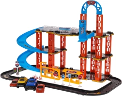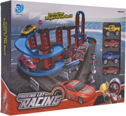Indeholder alt nødvendigt til legen, inklusive biler, racerbane, parkeringsplads og andet tilbehør.