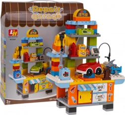 Kreativt byggesæt til bilværksted for børn fra 3 år. Indeholder 110 dele til at samle et funktionelt værksted med køretøj, værktøj og reparationsudstyr.