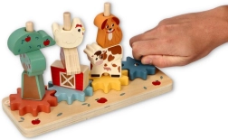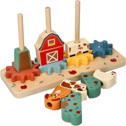 Puslespillet 'Skøre gård' er designet til at berige børns legende fantasi gennem træelementer malet i levende farver. Takket være de sammensættelige elementer formet som gård, træer og dyr lærer børn at placere brikker strategisk og forvandle udfordringer til leg. Legetøjet er udstyret med tandhjul, som gør det muligt for børn at udforske principperne for mekanik.
