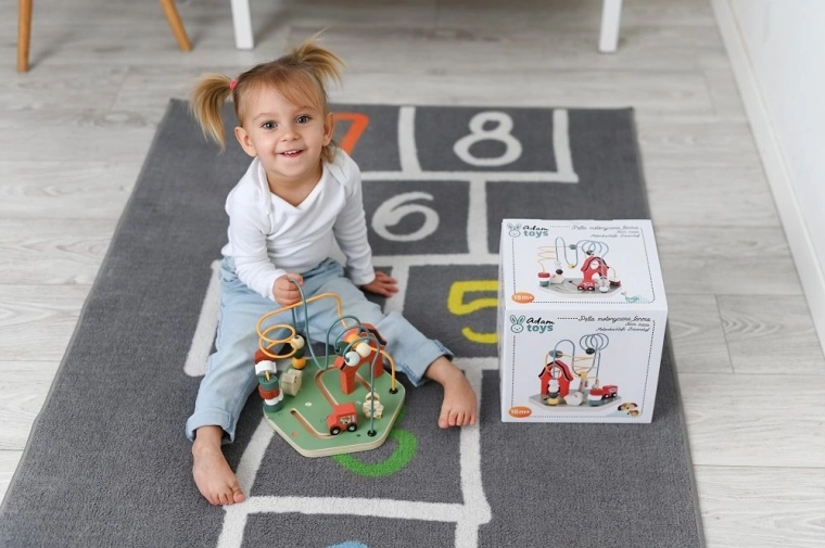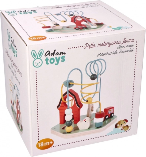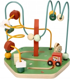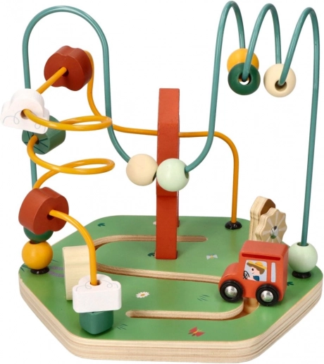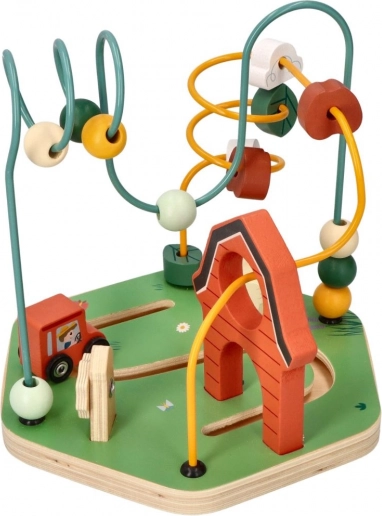 Denne farverige træ-perlelabrint med gårdtema tilbyder masser af sjov og støtter samtidig udviklingen af vigtige færdigheder hos børn. Børn vil elske at føre perlerne langs de snoede baner og opdage gårdelementer som traktor og høne. Produktet er egnet til børn fra 18 måneder og sikrer leg, der er både tryg, berigende og lærerig.