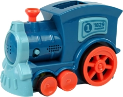Det interaktive tog til dominoopstilling er ideelt for børn, der elsker at lege med tog og domino. Legetøjet opstiller ikke kun dominospor, men stimulerer også hørelsen med lokomotivens lydeffekter. Toget stiller dominobrikkerne lige bag hinanden, og med et lille skub kan hele rækken væltes. Lokomotivet har også en drejelig tragt, der fungerer som rat for at ændre ruten.