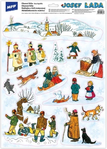 Pynt dine vinduer stilfuldt med vinduesfolie med motiver af Josef Lada. Disse juleklistermærker til vinduer skaber en magisk atmosfære af traditionelle tjekkiske juleaftener, er lette at sætte på, uden lim og kan bruges igen på alle glatte overflader.