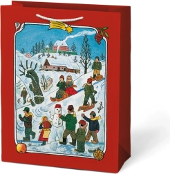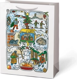 Elegant papirjulepose i størrelse L med unikke illustrationer af Josef Lada, der giver enhver gave et strejf af tradition. Den har et stærkt snorehåndtag for behagelig bæring, mærkeseddel til hilsen og en kvalitets lokal UV-lak for smuk glans og holdbarhed. Fås i fire vintermotiver og farver – hvid, rød, lyseblå, mørkeblå – leveres efter lagerstatus.