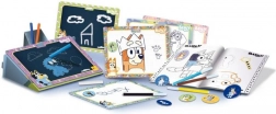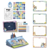 Dette skolesæt til tegning i en sød rygsæk med BLUEY-motiv motiverer børn til kreativ udfoldelse. Med den illustrerede vejledningsbrochure lærer små hænder let grundlæggende tegning og optegning direkte på den praktiske tavle.