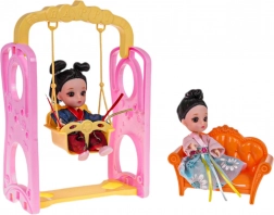 Medfølger 5 lyslamper (AG13, i alt 15 batterier), 2 dukker med bevægeligt hoved, arme og ben samt en lille bil til ture. Det rige udvalg af møbler og tilbehør sikrer mange timers leg og udvikler fantasien.
