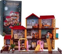 Oplev fantasiens verden med det store dukkehus med 251 dele – inklusive hus med have, møbler, bil, 2 dukker, hunde og masser af tilbehør. Der er lyslamper med batteri, gyngestativ og rutsjebane samt fuldt udstyrede rum som køkken, badeværelse, stue, soveværelse og garderobe. Ideelt til børn fra 3 år.