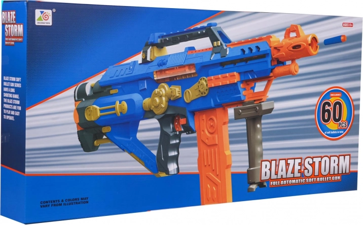 Den automatiske skumblaster BLAZE STORM er skabt til dynamisk familiesjov. Sigt og tryk på aftrækkeren – resten klarer den kraftige mekanisme. Det aftagelige bundmagasin, skydevindue til frigørelse af fastklemte pile og den solide konstruktion i kvalitetsplast gør den til et godt valg for børn fra 8 år.