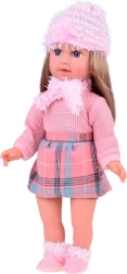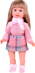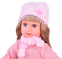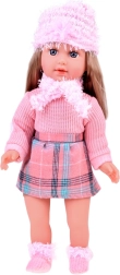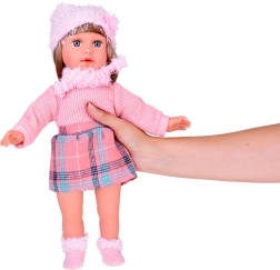 Vi præsenterer den vidunderlige dukke Kate, der lærer børn engelsk. Denne stilfulde dukke er klædt i en lyserød sweater, en ternet mini nederdel, strømper, et tørklæde og en hat med dekorative elementer. Dukkens højde er cirka 42 cm.