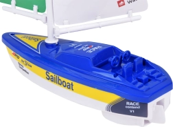 Denne plastsejlbåd giver børn masser af sjov ved leg i vand. Den moderne turbinedrift sikrer hurtig sejlads og stabilitet, mens den bevægelige finne og det bevægelige sejl gør det nemt at ændre kurs. Strøm fra AA-batterier er praktisk og let tilgængelig.