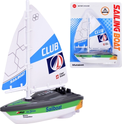 Denne sejlbåd i plast er ideel til badeanstalter, swimmingpools og små vandflader. Takket være den moderne turbinedrift er den stabil, kvik og let at manøvrere, selvom den har kompakte mål. Bevægeligt sejl og ror gør det muligt at ændre kurs og udvikler både barnets fantasi og finmotorik.