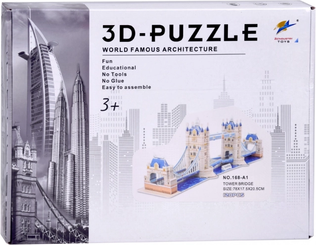 3D-puslespil Tower Bridge i London sammensat af 120 brikker – et fremragende læringsredskab for både børn og voksne til at skabe deres egen model af den berømte bygning. Puslespillet kræver hverken lim eller udskæring og byder på medrivende og udviklende underholdning.