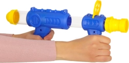 Spillet er fremstillet af holdbar plast og er sikkert til hjemmebrug takket være de bløde skumkugler. Opladning er nem – kuglerne sættes forfra i løbet, og skuddet affyres ved at skubbe pistolens bagende frem. Anden har kompakte mål, er let at transportere og underholder børn i timevis.