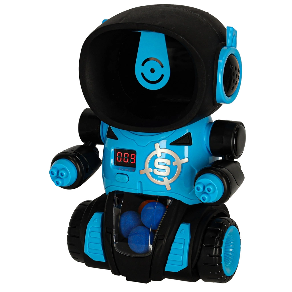 Sjovt skydespil med en smart robot til børn fra 3 år. Målet er at ramme skiven på robotens hoved med skumkugler. Robotten har et LCD-tæller til træffere og lys- og lydeffekter, som motiverer til flere forsøg. I pakken er der 2 pistoler og 24 bløde skumkugler til sikker og actionfyldt leg både inde og ude.