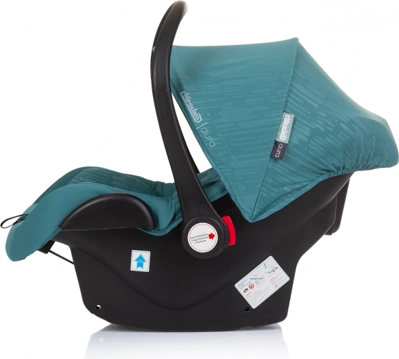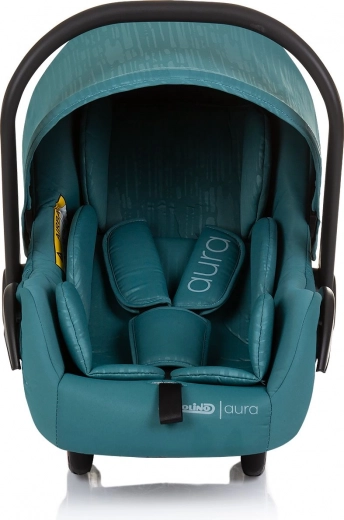 Chipolino AURA i-Size autostol til højde 40–85 cm og vægt op til 13 kg tilbyder sikkerhed efter ECE R129/03, behagelig polstring og nem transport takket være det justerbare bærehåndtag. Velegnet fra fødslen til ca. 15 måneder, installation udelukkende bagudvendt med bilens 3-punkts sele.