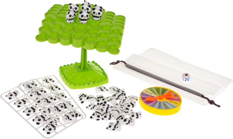 Arkadespil Panda for børn fra 3 år. Spillet består af en base, en stang, en spilleplade, pandabrikker, en terning og et opgavehjul. Spillernes opgave er at placere eller fjerne så mange pandabrikker som muligt fra spillepladen, som terningekastet angiver, samt udføre opgaverne på hjulet. Den spiller, der først får konstruktionen til at kollapse, taber. Spillet forbedrer hukommelsen, lærer logisk tænkning og tålmodighed. .. Spilfunktioner: . - arkadespil, .- beregnet til børn fra 3 år, .- lærer logisk tænkning, .- lærer tålmodighed, .- lærer at tælle, .- forbedrer hånd-øje-koordination, .- en god idé til at tilbringe tid sammen som familie. . |