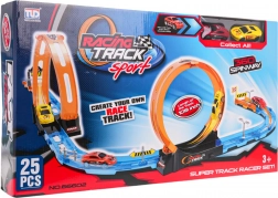 Designet til børn fra 3 år. Denne farverige racerbane er lavet af kvalitetsplast og lader små racerkørere opleve spændingen ved høj fart. Pakken indeholder 25 dele, der nemt kan samles til en bane med to loops og lige strækninger for maksimal hastighed.
