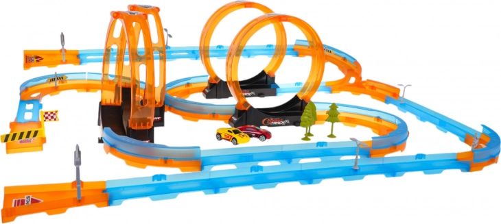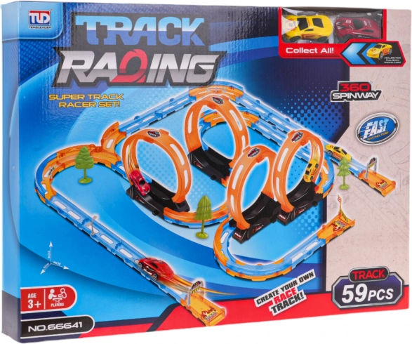Oplev glæden ved dynamisk leg med denne racerbane, ideel til børn fra 3 år. Den er lavet af plast i høj kvalitet og samles nemt af 59 dele til en spændende bane fuld af udfordringer og sjov.