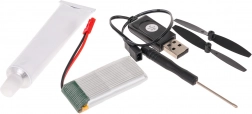 Pakken indeholder alt, hvad der er nødvendigt for samling, inklusive ekstra propeller, USB-oplader og batteri, så flyet er klar til start på ingen tid.