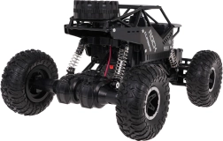 Robust RC crawler Rover i skala 1:16 med 4x4-træk, metal-karrosseri og fjederaffjedring klarer kørsel over sten, sand og græs. Takket være 2,4 GHz-styring, skridsikre dæk og antikollisionskonstruktion tilbyder den holdbar og sjov kørsel for børn fra 6 år.