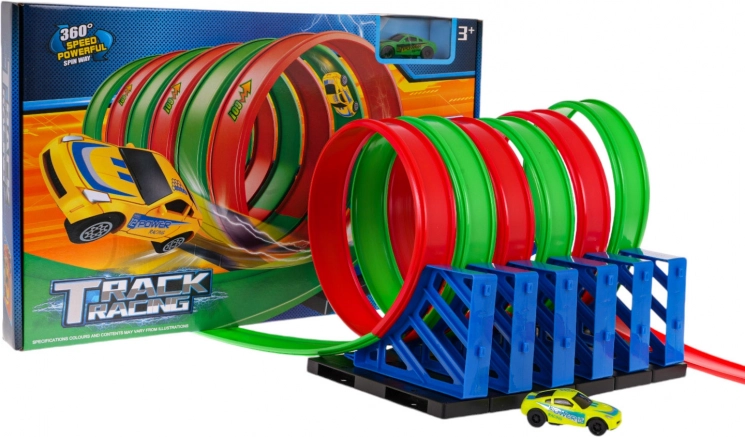 Racerbanen indeholder seks loops, der sætter gang i adrenalinen hos ethvert barn. Med livlige farver og høj kvalitet.