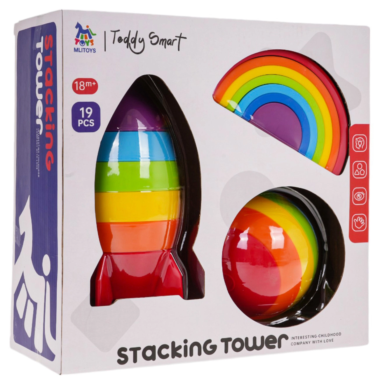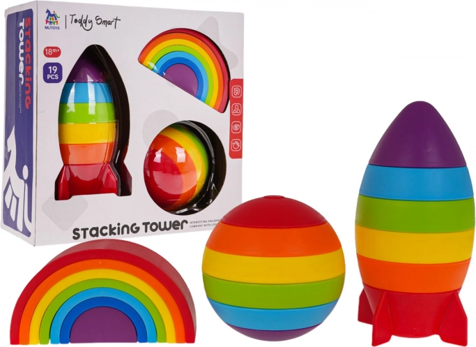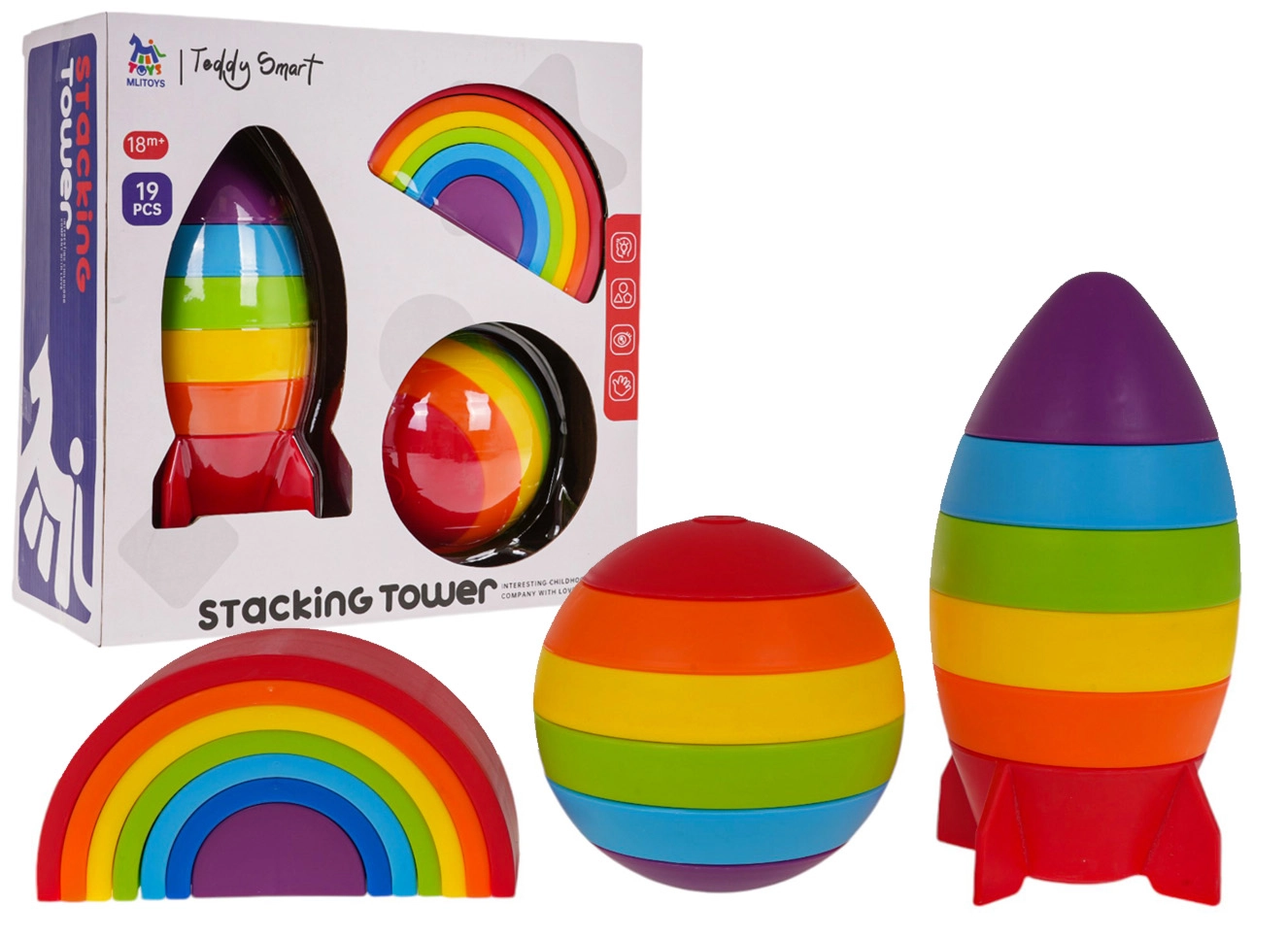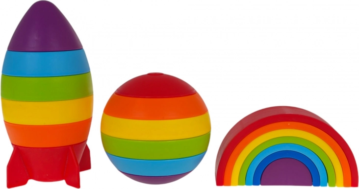 Dette alsidige sensoriske byggesæt åbner en farverig verden af skaberglæde: af 19 lette og robuste dele kan man nemt bygge en raket, regnbuebuer og en farverig kugle. Leg med farver, former og konstruktion udvikler naturligt finmotorik, logisk tænkning og tålmodighed, mens de kraftige farver støtter genkendelse af farver og sansemæssig opfattelse.